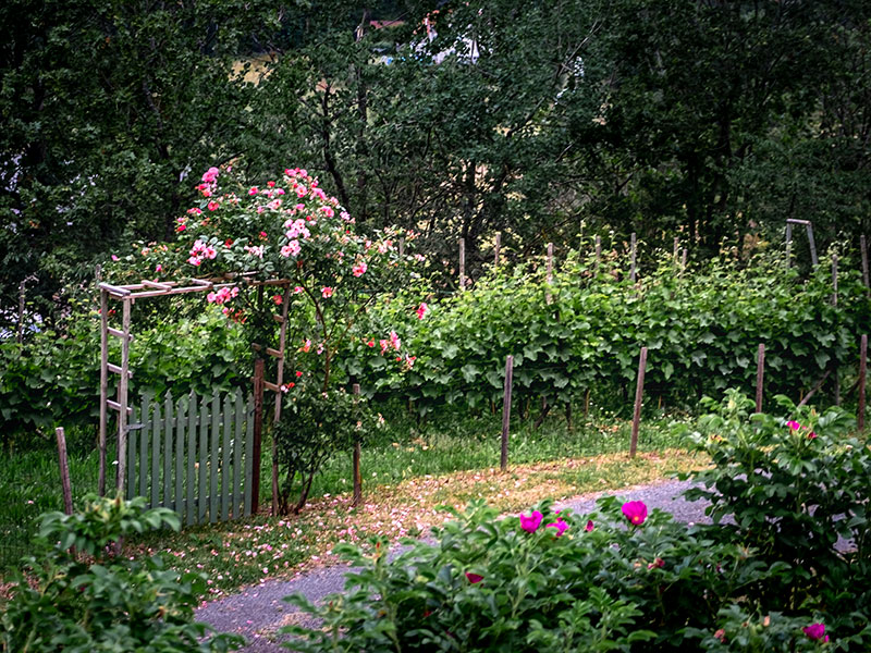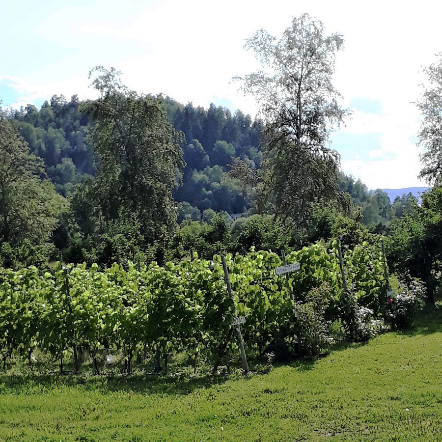 Vinodling på våra nordliga breddgrader kräver tåliga druvsorter. Vi odlar företrädelsevis hybridsorter framtagna för vinodling i svalare klimat. Druvorna har även viss resistens mot t.ex. mjöldagg och de kan därför odlas utan starka bekämpningsmedel.